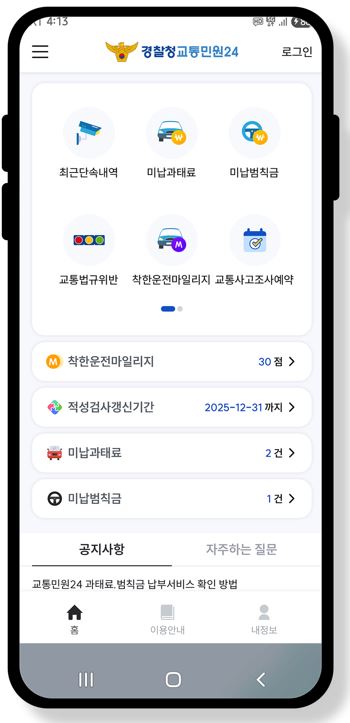 교통민원24 모바일 앱 메인화면이 변경되었습니다.